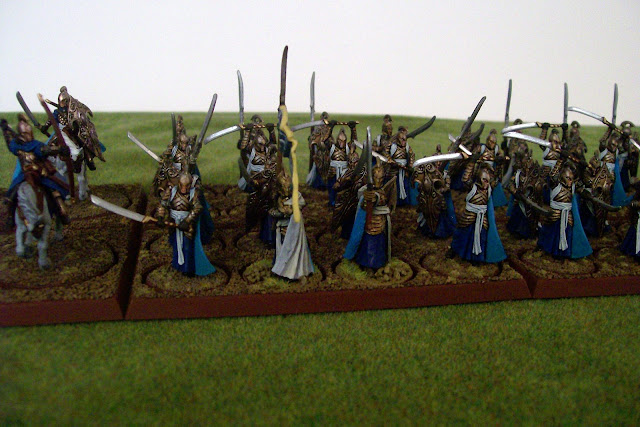 Above is a shot of my Elven Cavalry conversions. They will be using the Stats of Galadhrim Knights since it looks like the High Elf Knights will not be included in the War of the Ring Expansion's initial release. (Damnit, my High Elves have been nerfed again! ARRRGHHHH! Sorry, tension breaker. Had to be done. :) )